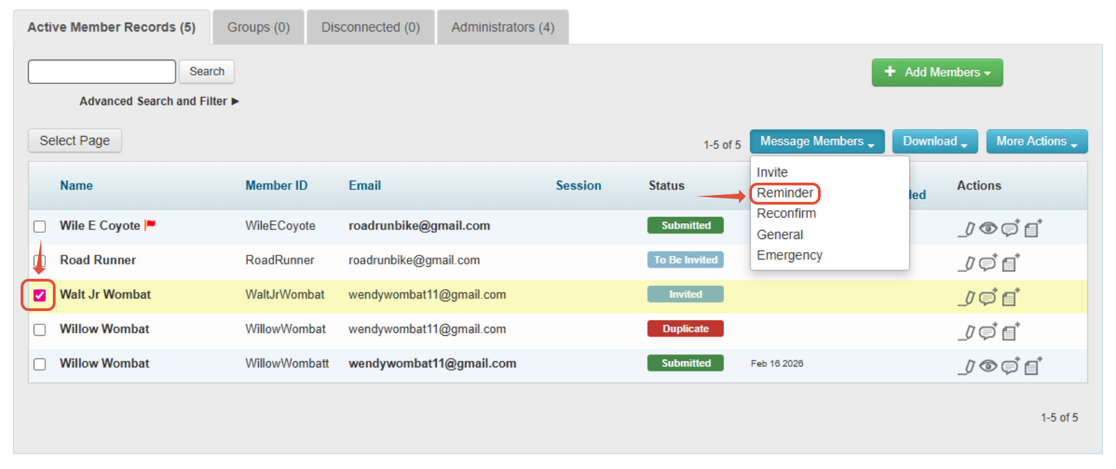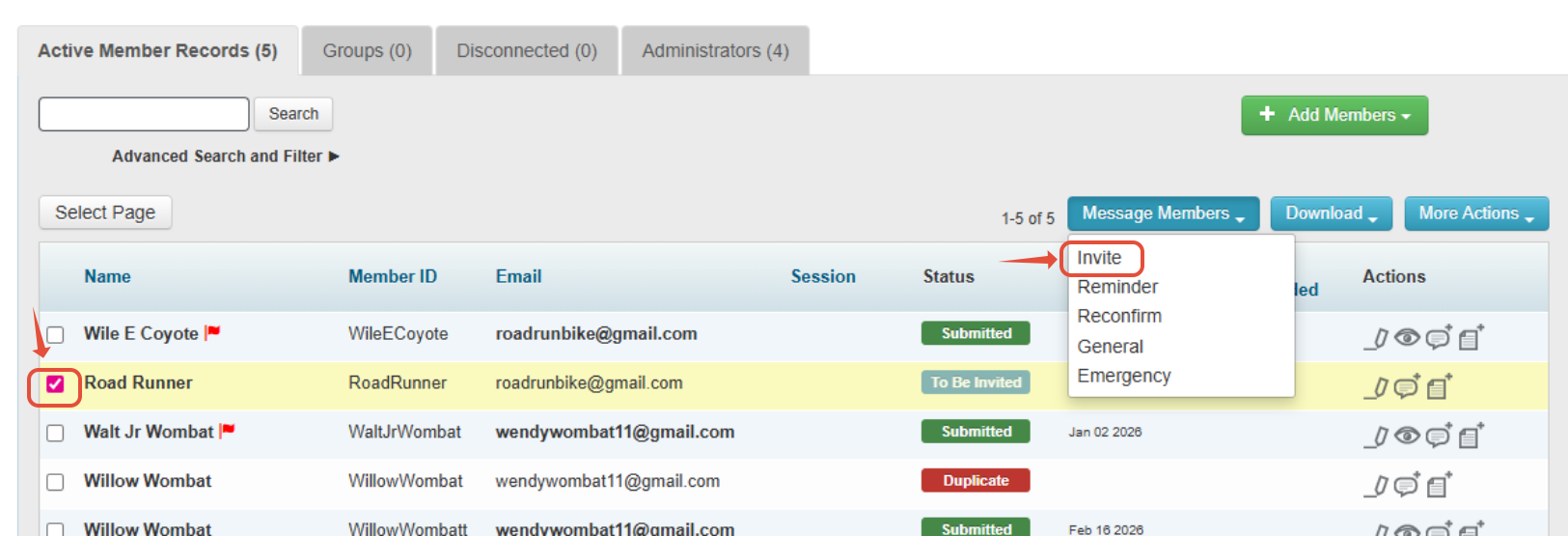 - If you are satisfied, click on Send Invite/Reminder at the bottom of the page