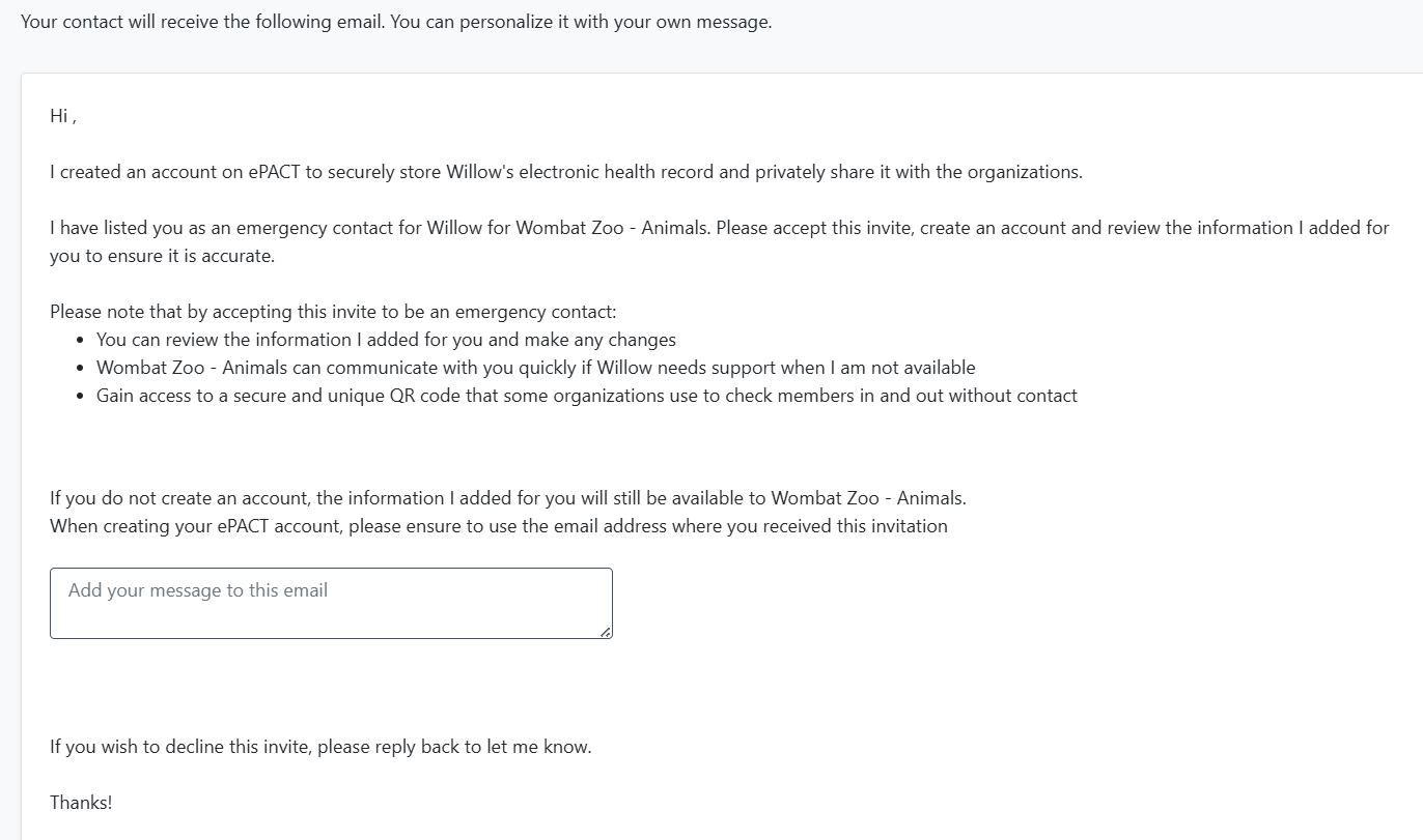 Can I add a personalized message when I add Emergency Contacts or Legal Guardians? Print