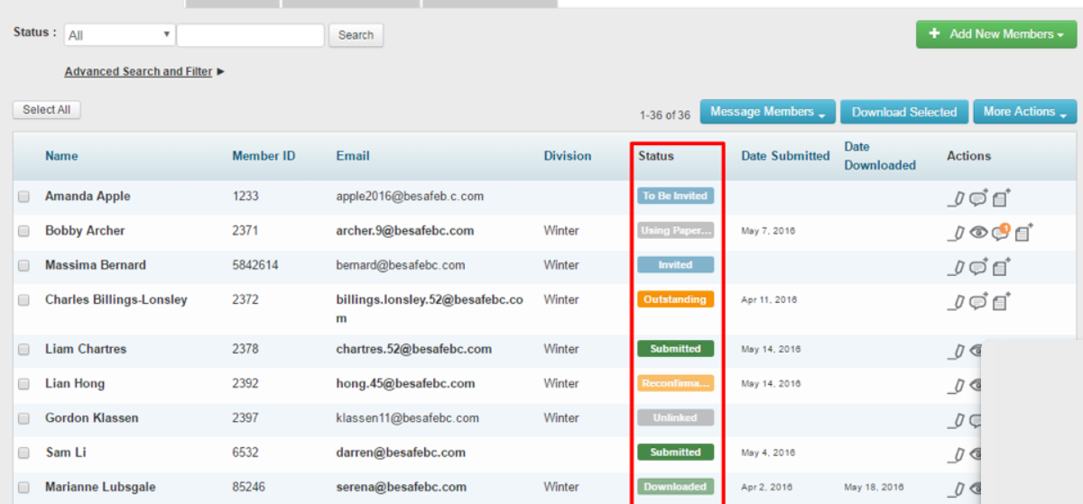 If a member makes any changes to emergency information after their file has been downloaded, their status will change back to Submitted, followed by the date of the last time it was downloaded.