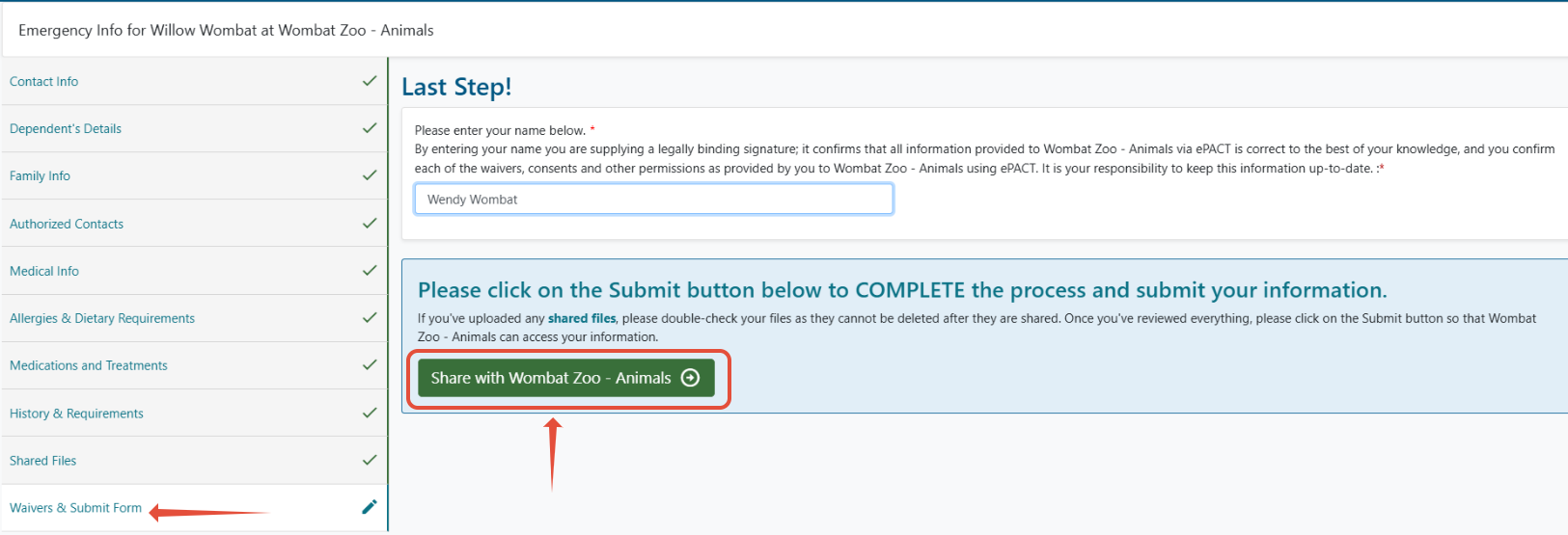 4. On the final step, be sure to click the green SUBMIT button to give your organization secure access to emergency information.