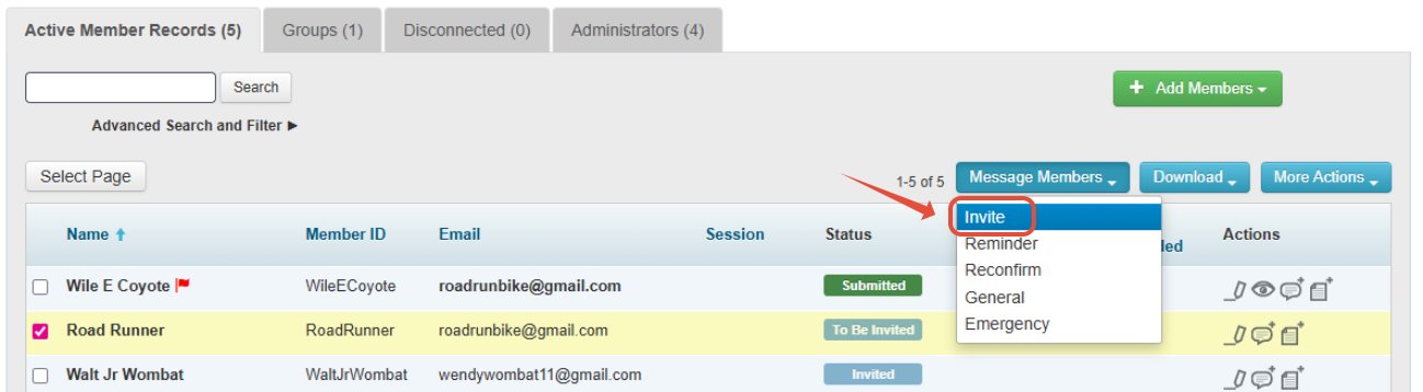 1. Make sure you're on the Active Member Records tab, click Send Invites, and follow the prompts.