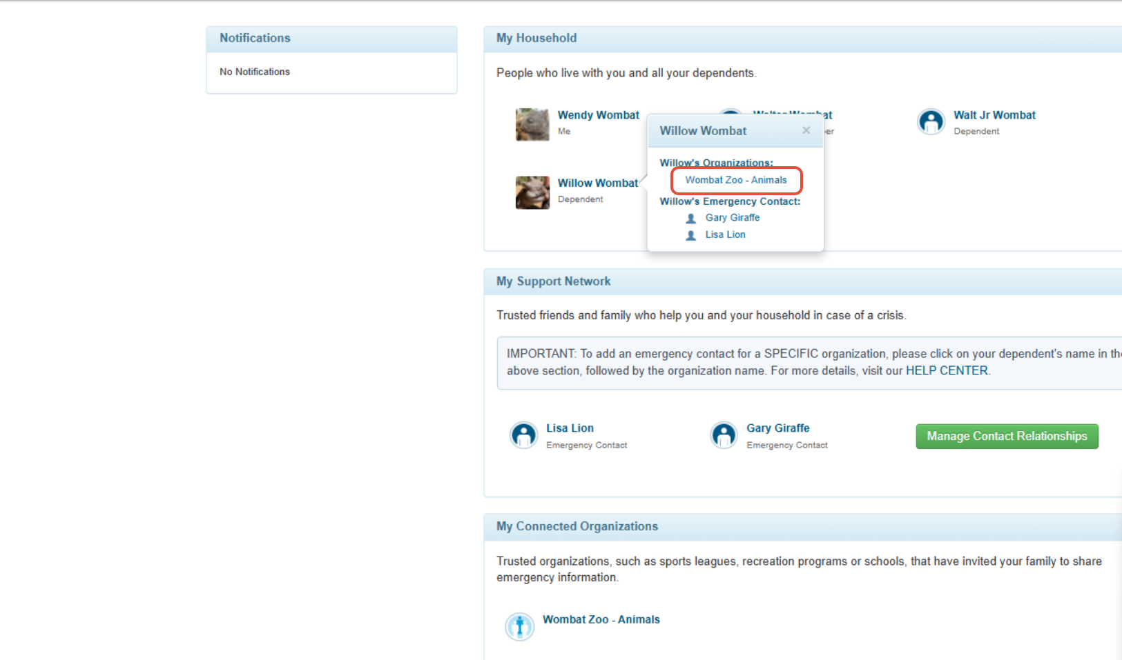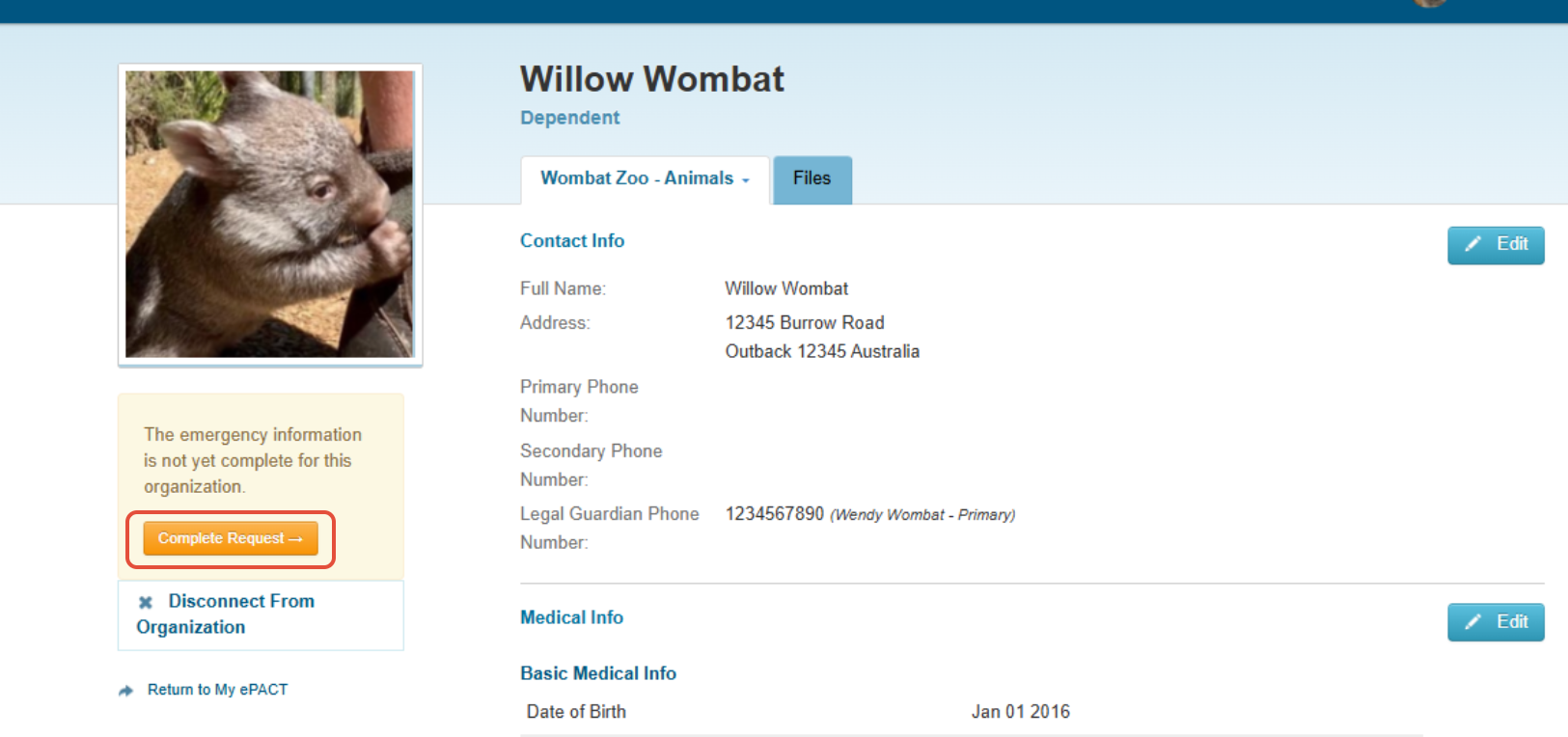 On your My ePACT page, click on your name or the name of the dependent that you would like to share information for, and then the name of the organization that you'd like to send the information to.