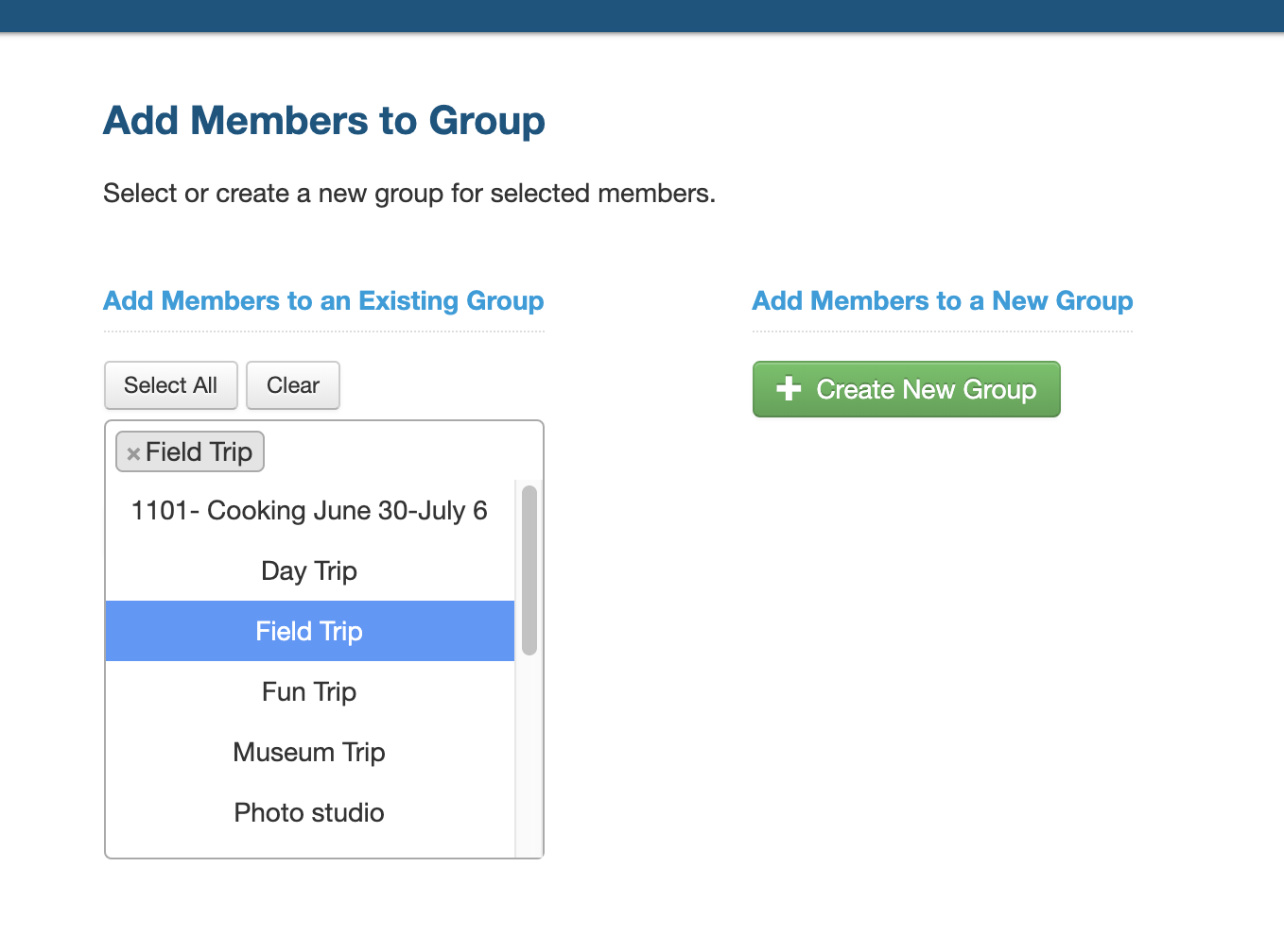 Additionally, you can add them to a group later on the dashboard by selecting the member(s), clicking on "More Actions>Add to group" and selecting the correct group(s).