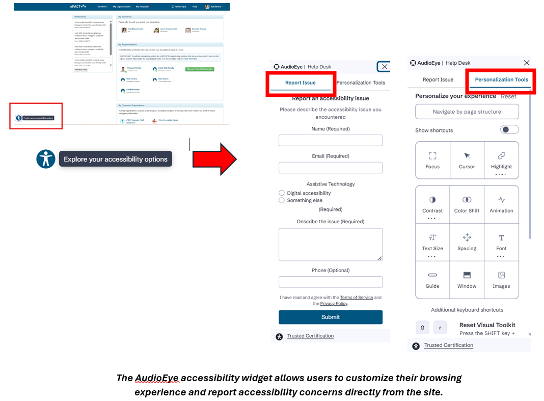 If you experience an accessibility issue while using ePACT, please use the AudioEye Accessibility Widget within the application to submit feedback. Reports submitted through this tool are reviewed and help inform ongoing accessibility improvements.